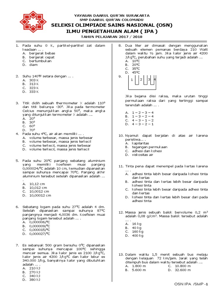 Pilihlah Jawaban yang paling benar. Soal Osn Ipa Smp 2018 Dan Kunci Jawaban Contoh file soal uts lengkap kelas 1 6 sd mi semua mata pelajaran 2016 2017 berikut ini adalah kumpulan dari berbagi sumber tentang contoh soal osn astronomi sma dan pembahasannya yang bisa gunakan untuk bank soal download sd dan diunduh secara gratis dengan menekan tombol download biru dibawah ini. Soal dan pembahasan osn ipa smp.