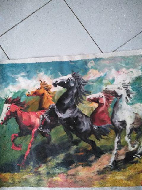 Lukisan Feng Shui 5 Kuda Sedang Berlari Pembawa Kerberhasilan Shopee Indonesia